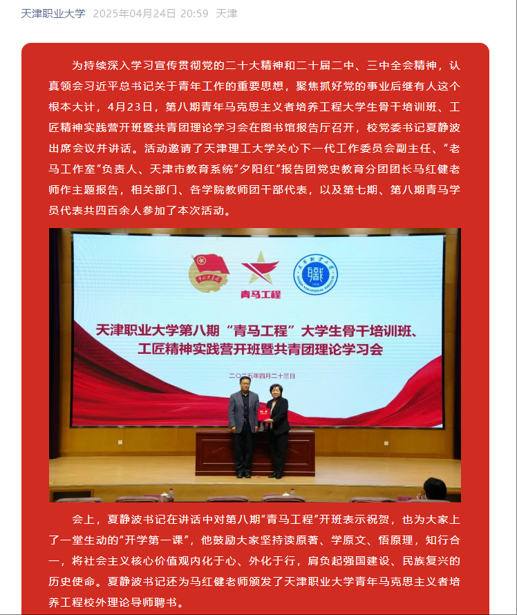 我校举行第八期青年马克思主义者培养工程 大学生骨干培训班、工匠精神实践营开班暨共青团理论学习会