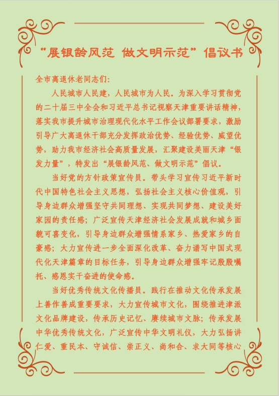 “展银龄风范 做文明示范”倡议书